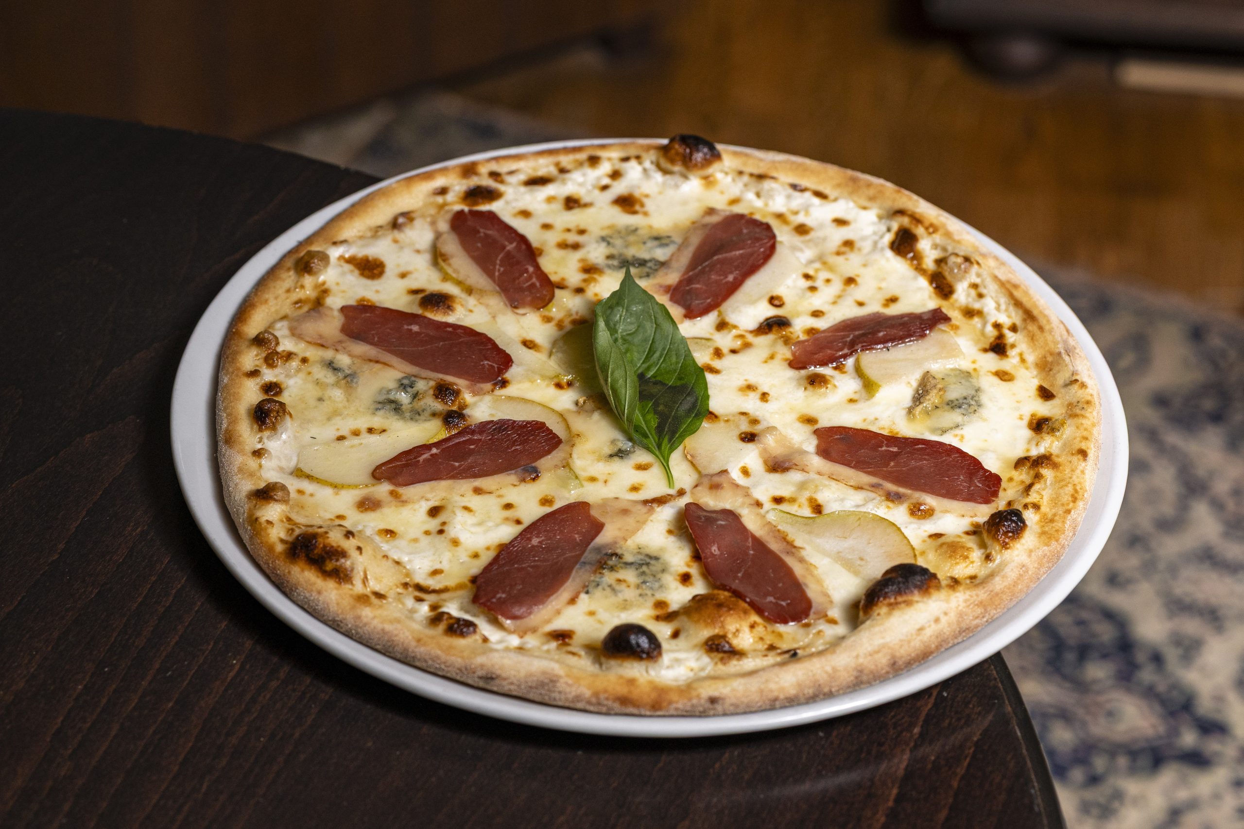 Mascarpone, mozzarella, pear, gorgonzola, smoked duck breast